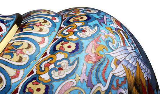 景泰藍(lán)又名“銅胎掐絲琺瑯”,是一種以紫銅作坯,以細(xì)薄的金線或銅絲掐成各種花紋,中充琺瑯釉,燒制而成的瑰麗多彩的工藝美術(shù)品。