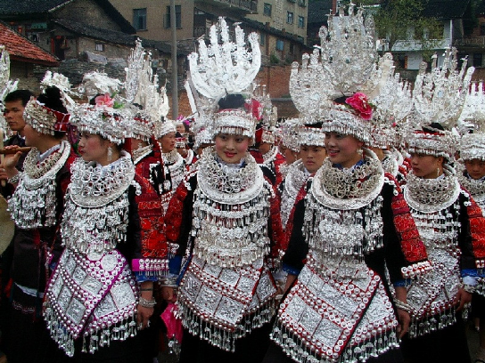 貴州施洞苗族銀飾鍛造歷史悠久,銀飾工藝精湛,工藝品主要有銀角、銀冠、銀花、銀簪、銀梳、銀插針、銀耳柱、銀耳墜、銀項(xiàng)圈、手鐲,花片和銀鈴等等。施洞的銀飾全部用純銀制作,純度達(dá)97%以上,穿戴起來(lái)顯得十分亮麗和貴重。施洞的盛裝在世上可堪稱一絕,銀飾現(xiàn)已成為裝飾品、藝術(shù)品、美的標(biāo)志、富有的象征。施洞鎮(zhèn)專門從事銀飾制作的有200余戶,所生產(chǎn)的銀飾品暢銷國(guó)內(nèi)外,成為主要的經(jīng)濟(jì)來(lái)源。