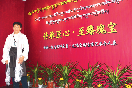 2016年9月2日,以“傳承匠心·至臻瑰寶”為主題的朵普·次嘎金屬造像藝術(shù)個人展在西藏博物館開幕。 圖為朵普·次嘎的紀念照片。