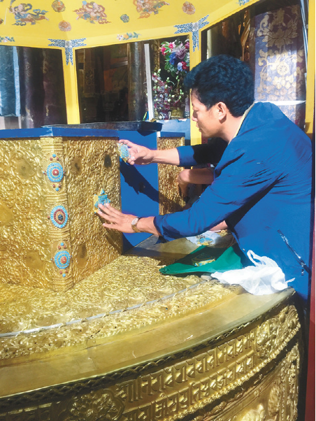 2011年,拉薩大昭寺啟動金頂維修工程。次嘎有幸成為此次維修大昭寺金頂、金屬佛像和法器等鍛鑄造任務(wù)的工藝匠人。