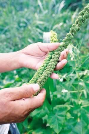 答:我剛開始生態(tài)種植的時候,很多老品種已經(jīng)沒有了,只有黃豆、辣椒、南瓜、黃瓜這些,其他沒看見人種了。像小米、芝麻,都是后來慢慢收集來的。