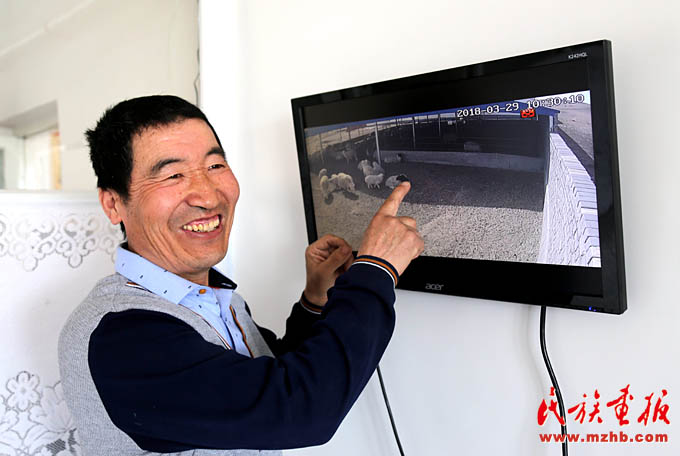 牧民朱寶忠利用監(jiān)控器可隨時(shí)了解棚舍里羊群的情況