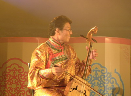 若西戈瓦在“烏蘭杯”第三屆中國蒙古族服裝服飾藝術節(jié)閉幕會上演奏《萬馬奔騰》