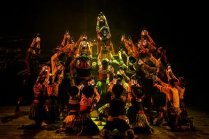 “《幸?;ㄉ健肥俏鳟牼裨谖枧_上的藝術(shù)表現(xiàn)和衍生。這個劇目展現(xiàn)了人類在面對困境時集體智慧的力量,闡釋了中國優(yōu)秀傳統(tǒng)文化的當(dāng)代價值。希望觀眾通過這個劇目,能夠真正領(lǐng)悟‘幸福是奮斗出來的’這句話的深刻內(nèi)涵?!蔽纳街菝褡逦幕ぷ鲌F團長王成懷說。