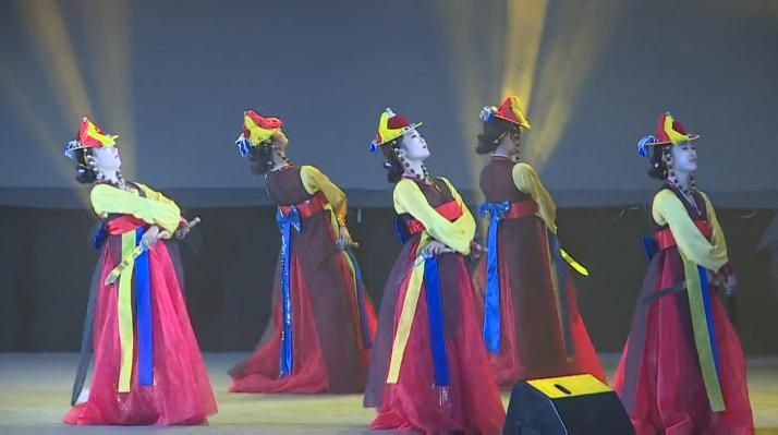 關于刀舞的由來,也有一段令人神往的傳說。新羅國有位名叫黃昌郎的壯士,7歲的時候就能揮舞長劍表演,氣勢如虹。他一人來到百濟市舞劍,觀眾圍得里三層外三層,深深為他的劍術所吸引。百濟王聽說以后,召黃昌郎入宮表演。黃昌郎借舞劍之機,刺殺百濟王,結果最終被人殺害。新羅國的人民為了緬懷黃昌郎的義舉,面帶假面具,手持折半的刀,照他從前表演的舞姿跳舞。刀舞于是由此而來。刀舞與劍舞一樣,雄壯、勇猛、躍動的舞姿貫穿舞蹈的全過程。刀舞有很強的隨意性,沒有統(tǒng)一的套路,舞者的基本動作合著打擊樂節(jié)奏可隨意發(fā)揮。舞蹈反映了朝鮮族人民勇敢、大膽、智慧、樂觀的民族氣概。舞蹈姿勢剛柔相濟,激舒并存,急緩相容,像疾風般的向前沖,左右猛刺,輕快猛移等動作,“喀嚓”、“喀嚓”的揮刀聲以及浪漫的舞態(tài),給人以強烈的號召感,體現(xiàn)了朝鮮族舞蹈的高超技藝。