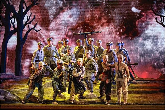 毛主席曾總結(jié)說(shuō):“長(zhǎng)征是宣傳隊(duì),它向十一個(gè)省內(nèi)大約兩萬(wàn)萬(wàn)人民宣布,只有紅軍的道路,才是解放他們的道路?!薄伴L(zhǎng)征又是播種機(jī),它散布了許多種子在十一個(gè)省內(nèi),發(fā)芽、長(zhǎng)葉、開花、結(jié)果。”六盤山是紅軍長(zhǎng)征途經(jīng)的最后一座大山,當(dāng)劇中覺醒的眾鄉(xiāng)親唱道:“六盤者青松濤聲歡,沖上了五彩的云端,一支(哈)人馬喊聲亮,震顫了百姓的心坎,黑暗中點(diǎn)燃希望的火”,六盤山這個(gè)紅色地標(biāo)被再次點(diǎn)亮!