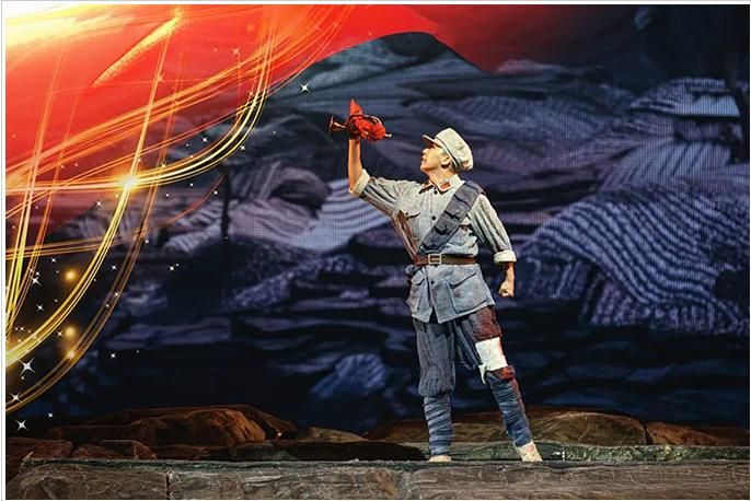 《花兒與號(hào)手》是一部以紅軍長(zhǎng)征路過(guò)六盤山為背景創(chuàng)作的音樂劇,全劇展現(xiàn)了長(zhǎng)征路上紅軍戰(zhàn)士的理想信念和“長(zhǎng)征是宣言書、是宣傳隊(duì)、是播種機(jī)”這一核心思想,弘揚(yáng)了中國(guó)共產(chǎn)黨百年征程中展現(xiàn)出的無(wú)私無(wú)畏的革命精神。