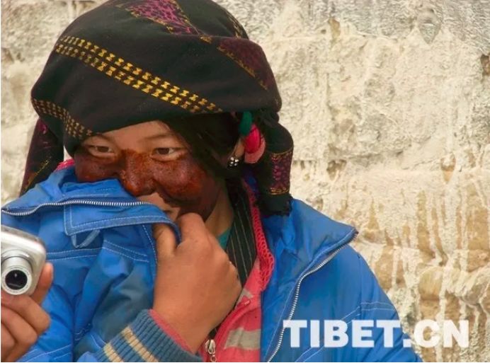 圖為涂擦“安達(dá)”的西藏婦女