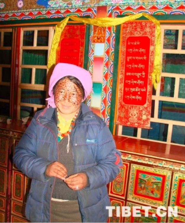 一般情況下,藏北牧區(qū)婦女外出勞作都會(huì)用圍巾將頭部和頸部圍住,這樣既可以保暖御寒又可以抵御強(qiáng)烈的紫外線。而“安達(dá)”可用于涂抹除了眼睛、嘴巴、鼻子外所有臉部區(qū)域。涂抹在臉上的“安達(dá)”自然干了后,婦女們往往會(huì)等到第二天甚至第三天再用溫水洗凈。