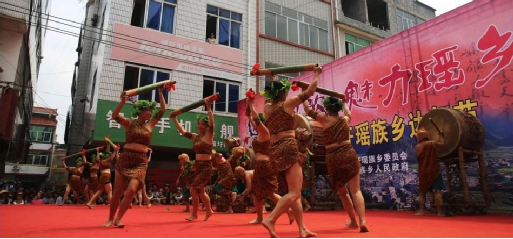 上林縣瑤族鼓樂,原汁原味,鼓點雖然簡單,卻具有原生態(tài)的民族特色。后經(jīng)藍卓寶、藍連榮、盧成、盧飛燕等學(xué)者挖掘整理,2010年開始籌備瑤鼓樂,2011將具有上林瑤族鼓樂特色的“瑤山鼓”搬上舞臺。