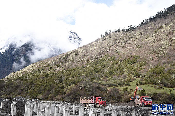 2018年初,隆子縣玉麥鄉(xiāng)電力線路全線貫通,9戶32位群眾將用上國(guó)家電網(wǎng)源源不斷的電能。圖為工人在玉麥鄉(xiāng)境內(nèi)施工(和訊新聞)