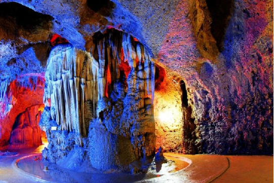 或涉淺水急流,或攀懸崖天梯,或越洞壁棧道,進(jìn)入一漫長旱洞,雖無奇觀險(xiǎn)境,卻有寬平小道,提心方落,驚汗始干。出洞回首,山無雄姿,石無殊異,而內(nèi)卻藏奇納秀,有如天庭仙境,龍宮夢幻,使人感慨萬干,流連忘返。