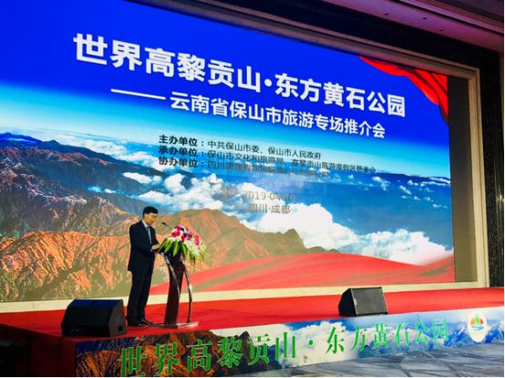 2019年4月10日,“世界高黎貢山·東方黃石公園”保山旅游專場推介會在成都市召開。成都和保山兩地旅游界、航空界、新聞界的嘉賓300多人出席推介會。保山市人民政府副市長宋光興、成都市人民政府副秘書長唐章昭出席推介會并致辭。宋光興副市長指出,成都素有“天府之國”的美譽,自然風光雄奇險秀,民族風情多姿多彩,巴蜀文化積淀深厚,革命歷史可歌可泣,川菜享譽四方,川劇獨具魅力,旅游資源得天獨厚,是一座傳統(tǒng)與現(xiàn)代結合得最好的城市,是“一座來了就不想離開的城市”。高黎貢山作為全球生物多樣性最富集的地區(qū),有高等植物4897種,動物2389種,垂直高差達4000多米,幾乎分布有中國除沙漠之外的所有陸地氣候類型,是國家級自然保護區(qū),是世界公認的地球上最重要的“物種基因庫”、是具有國際重要意義的“世界生物圈保護區(qū)”,是“三江并流”世界自然遺產(chǎn)的重要組成部分。高黎貢山獨特的地質地貌孕育了保山宜人的氣候、優(yōu)良的生態(tài)、富集的溫泉、秀美的風光、多彩的文化和富饒的物產(chǎn),使保山成為云南新興的旅游熱點和宜居城市。希望通過這次旅游推介會,能夠在成都、保山兩地之間架起一座便捷的橋梁,進一步深化兩地文化旅游交流合作,共推旅游線路,共拓旅游市場,實現(xiàn)互惠共贏。