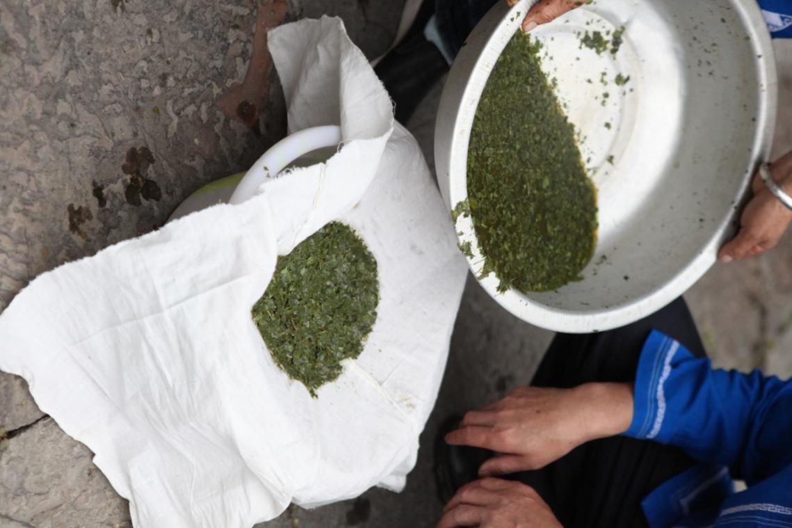 烏米飯制作技藝是石頭寨苗族同胞用天然植物烏飯葉和糯米制作而成的一種苗家特色傳統(tǒng)飲食。因其色澤純黑,故稱之為烏米飯。