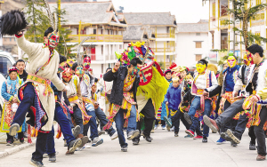 2014年2月8日,四川省雅安市寶興縣磽磧藏族鄉(xiāng)的藏族同胞舉行燈會、舞獅、舞龍等活動,慶祝“上九節(jié)”...