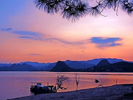 百花湖在朱昌鎮(zhèn)旁,湖中有100多個小島,以湖汊多、島嶼多見勝,遠眺之下,很有幾分江南水鄉(xiāng)的韻味。游覽百花湖的最佳時間是春天,那時百花湖上就會百花盛開,姹紫嫣紅,百花湖也是因此而得名的。景區(qū)以湖光山色和巖溶地貌的自然景觀為主體,兼具秀、幽、奇、巧的特色。