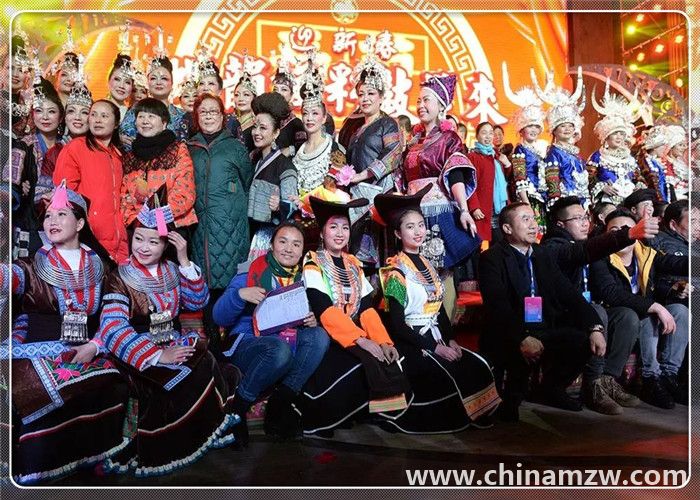2019年1月19日,由貴州省社科聯(lián)、貴州民族大學(xué)指導(dǎo),貴州省苗學(xué)會(huì)主辦,貴陽市苗學(xué)會(huì)、六盤水市苗學(xué)會(huì)、安順市苗學(xué)會(huì)、畢節(jié)市苗學(xué)會(huì)、銅仁市苗學(xué)會(huì)、黔西南州苗學(xué)會(huì)、黔東南州苗學(xué)會(huì)、黔南州苗學(xué)會(huì)、貴安新區(qū)苗學(xué)會(huì)、多彩貴州城建設(shè)經(jīng)營有限公司共同協(xié)辦的“迎新春-蝶韻楓彩鼓聲來”2019春節(jié)聯(lián)歡晚會(huì),在貴州省貴陽市“多彩貴州城”展示中心隆重舉辦。貴州省9個(gè)州市及貴安新區(qū)苗族、布依族、侗族、土家族、彝族、仡佬族、水族、回族、白族、瑤族、壯族、毛南族、蒙古族、仫佬族、羌族、滿族等17個(gè)少數(shù)民族載歌載舞歌盛世,歡天喜地迎新春。