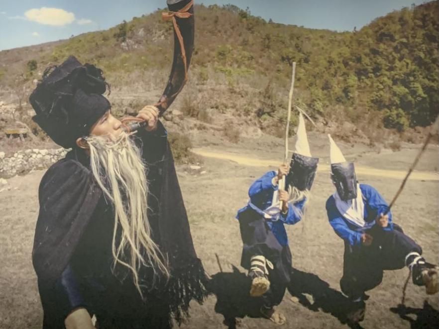 彝族男子正在進行祭祀活動(許覬佳攝于貴州省博物館)