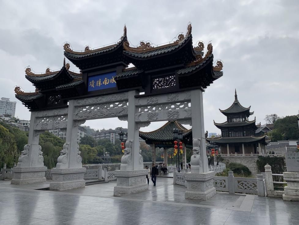 甲秀樓景區(qū)從廣場牌坊由北向南,分為三個部分: