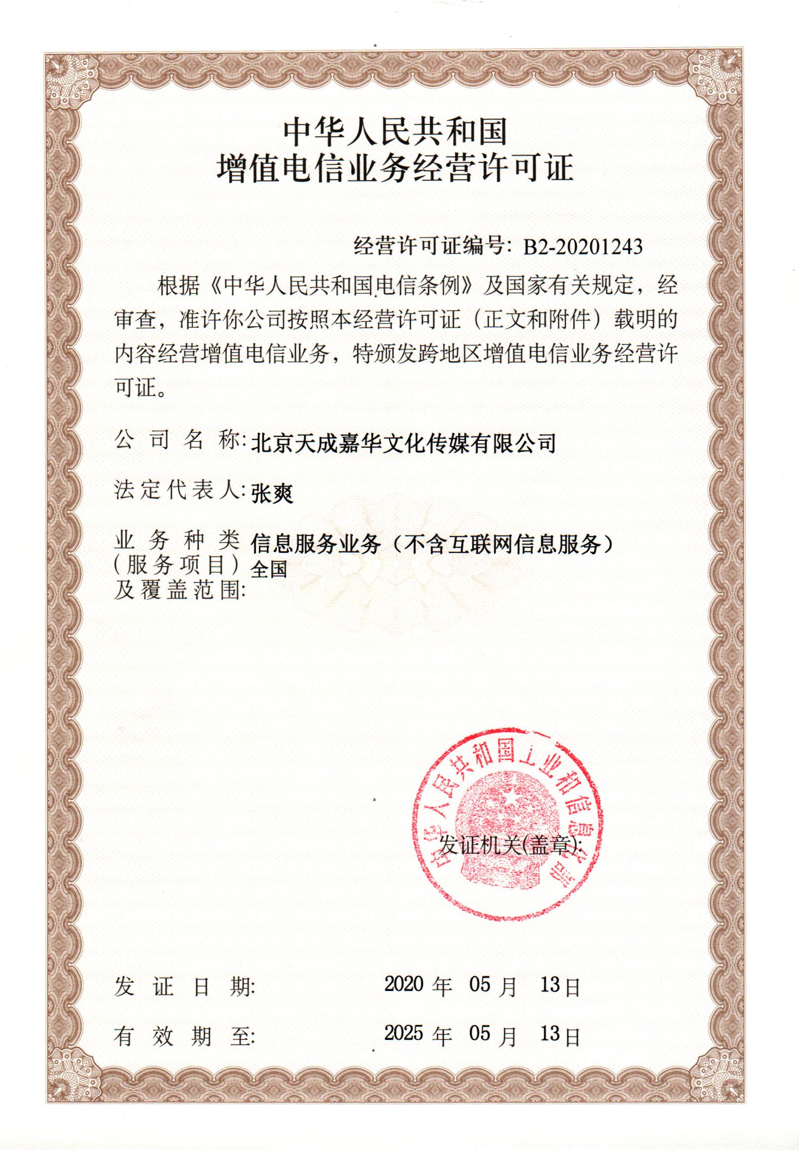 增值電信業(yè)務經營許可證B2-20201315