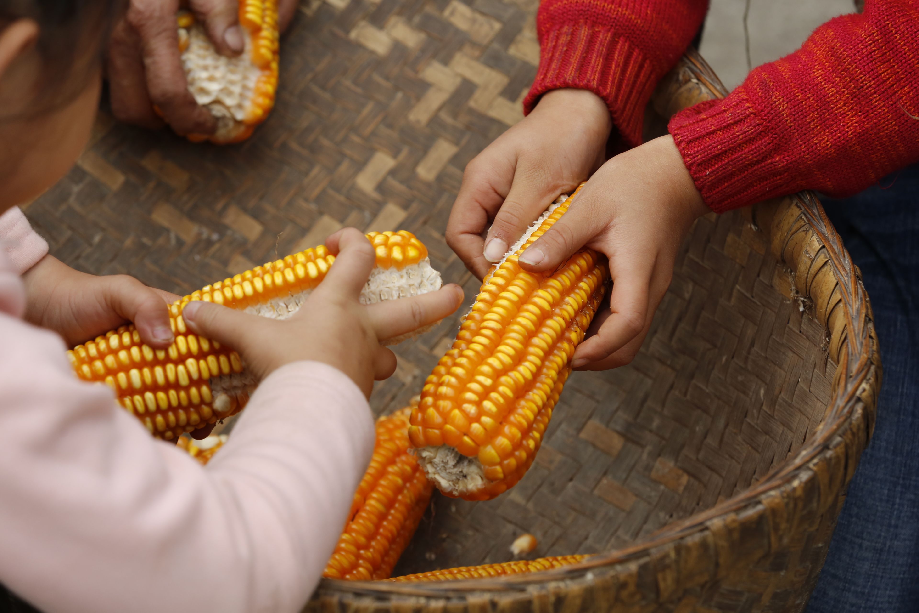 苗族老年人與兒童剝玉米2