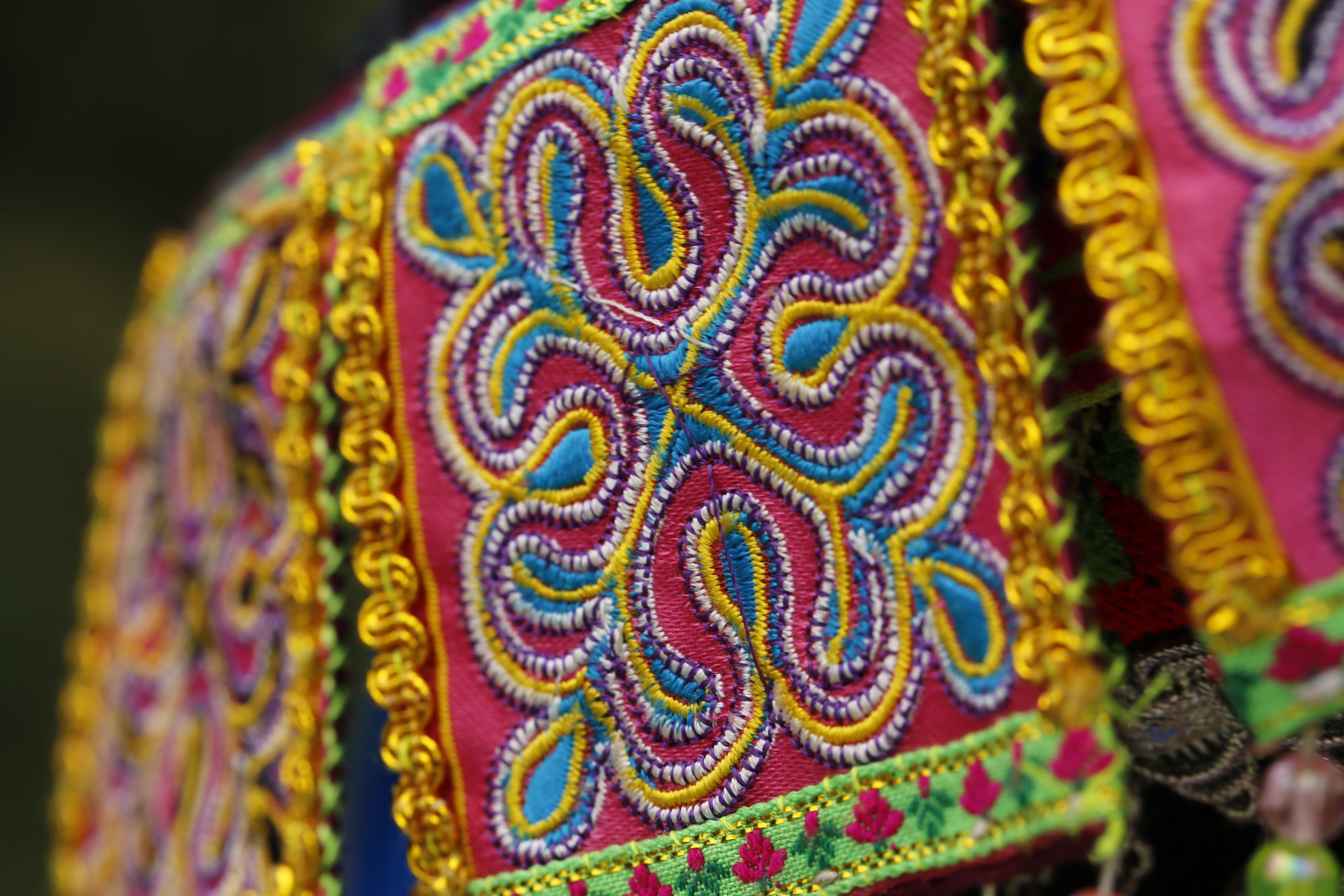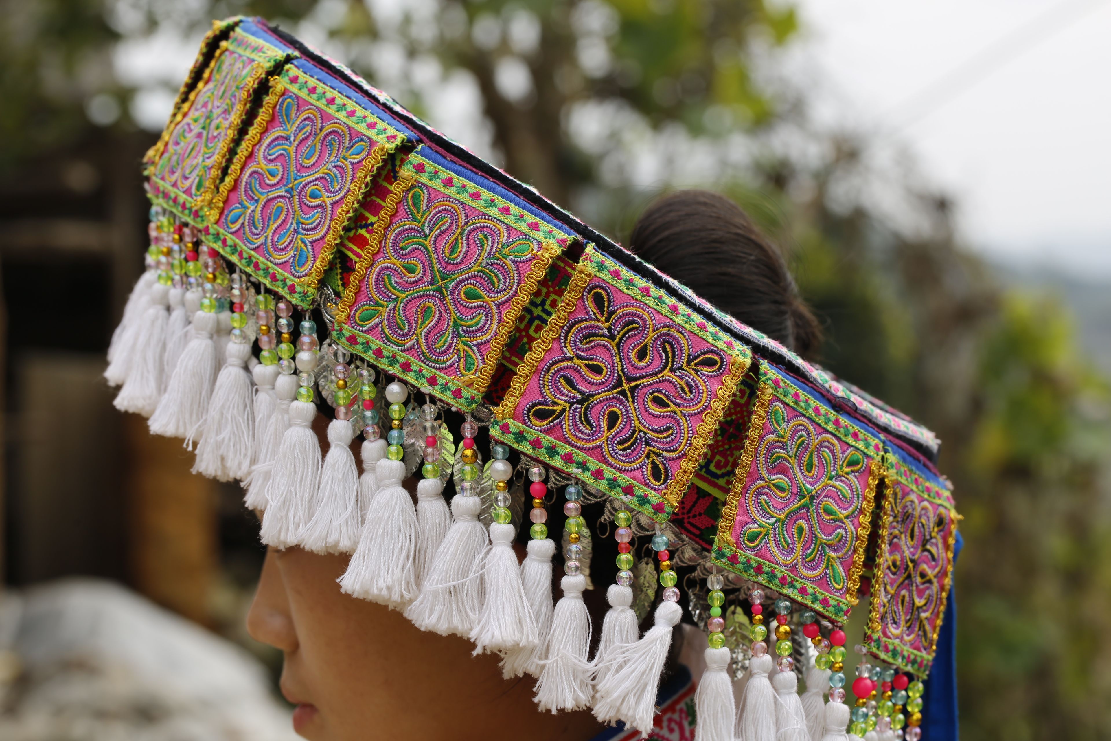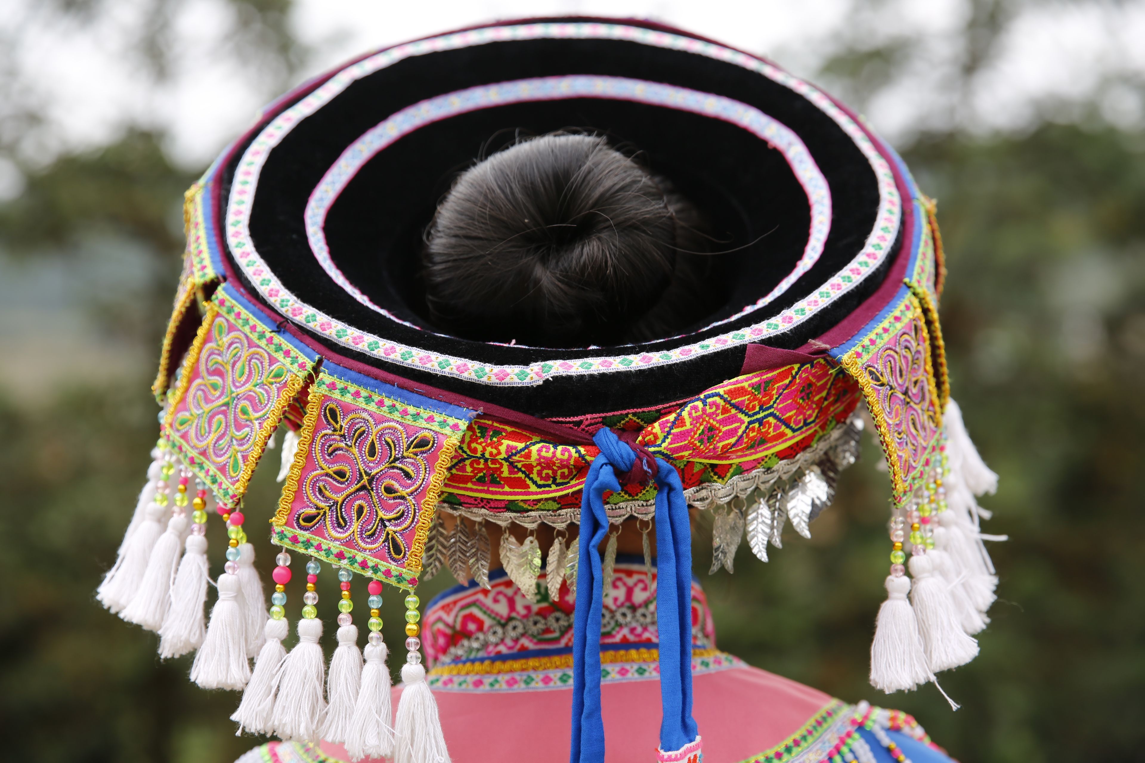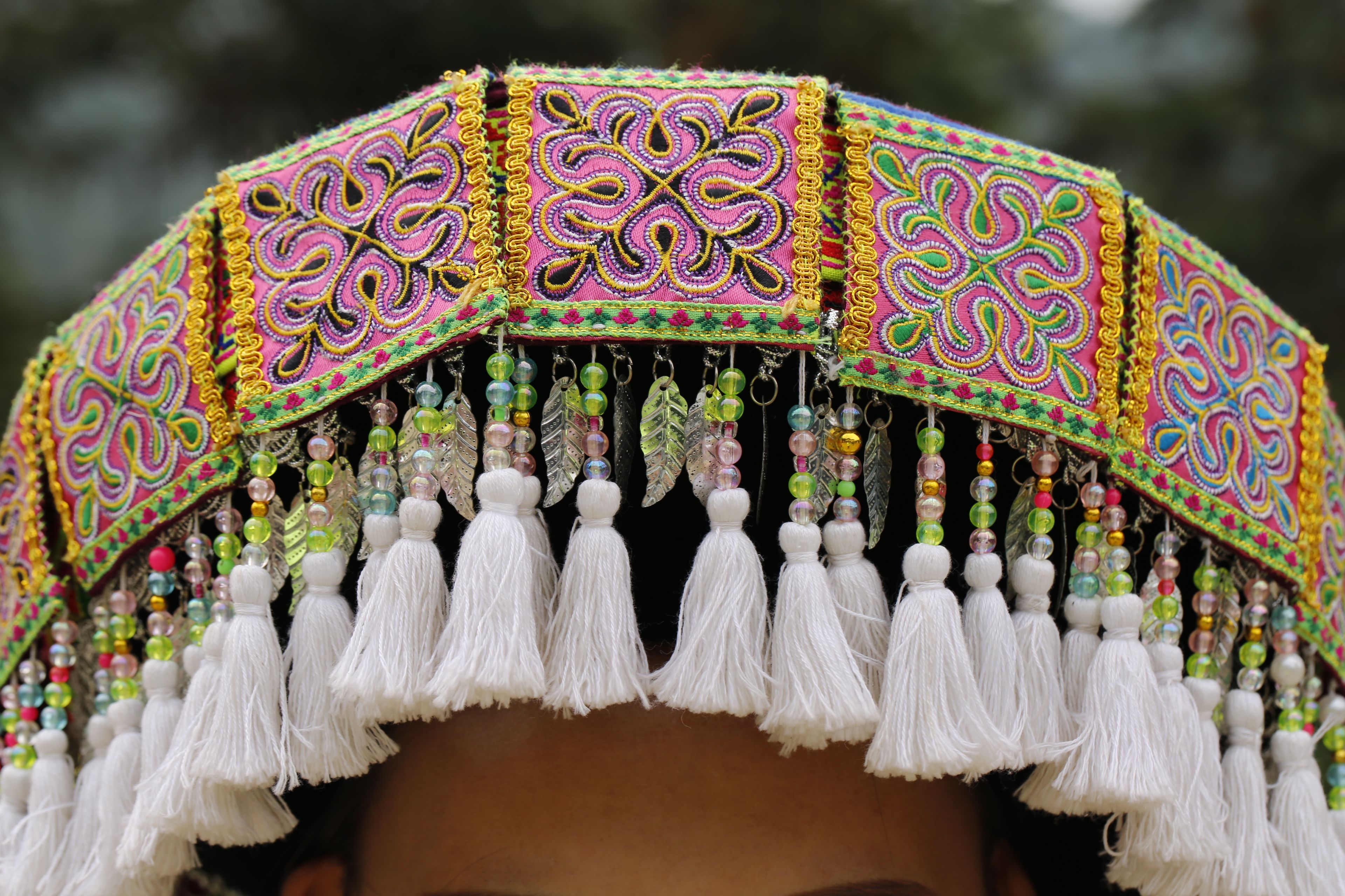苗族女子服飾花帽-側(cè)面繡花及裝飾2